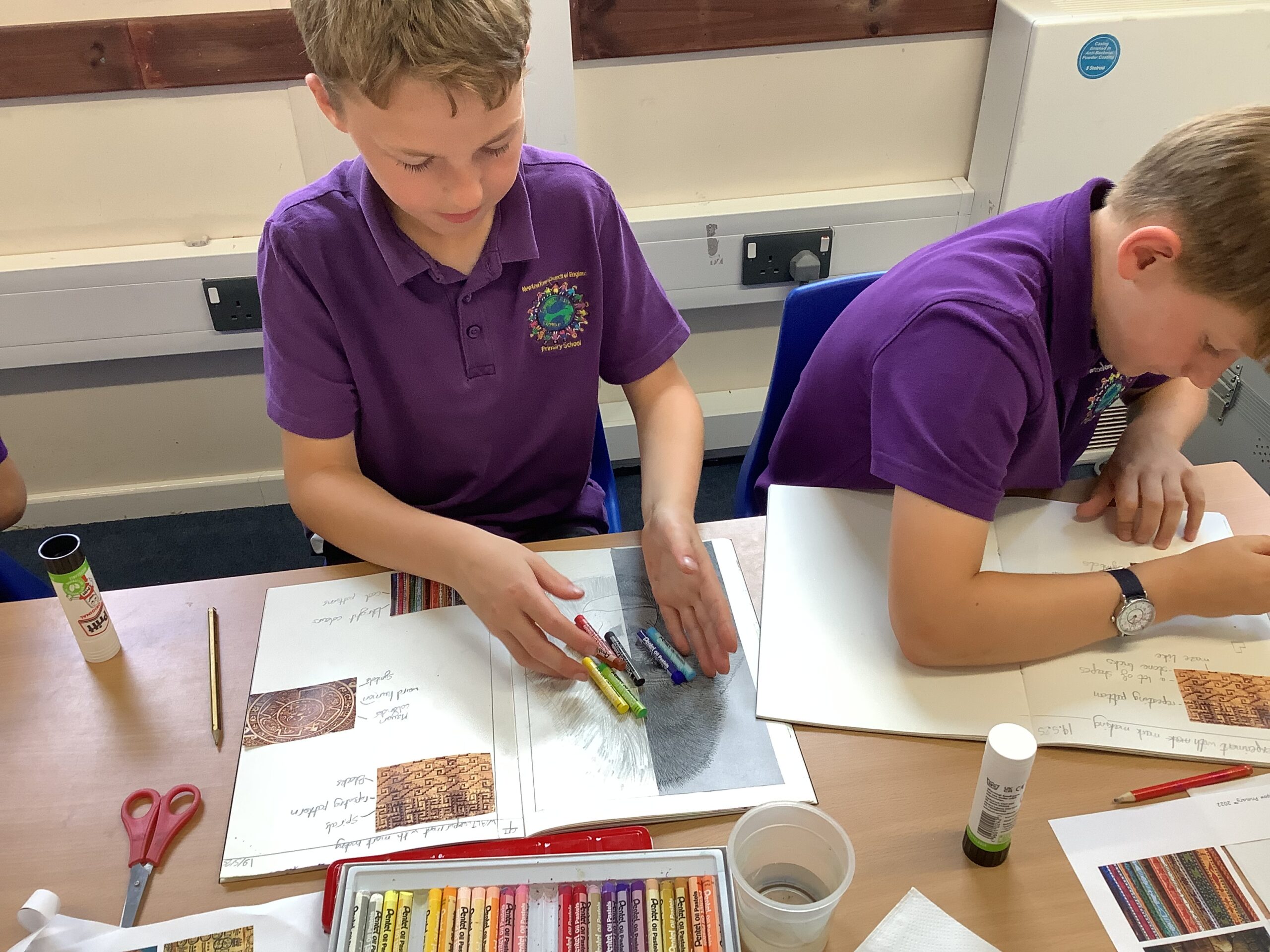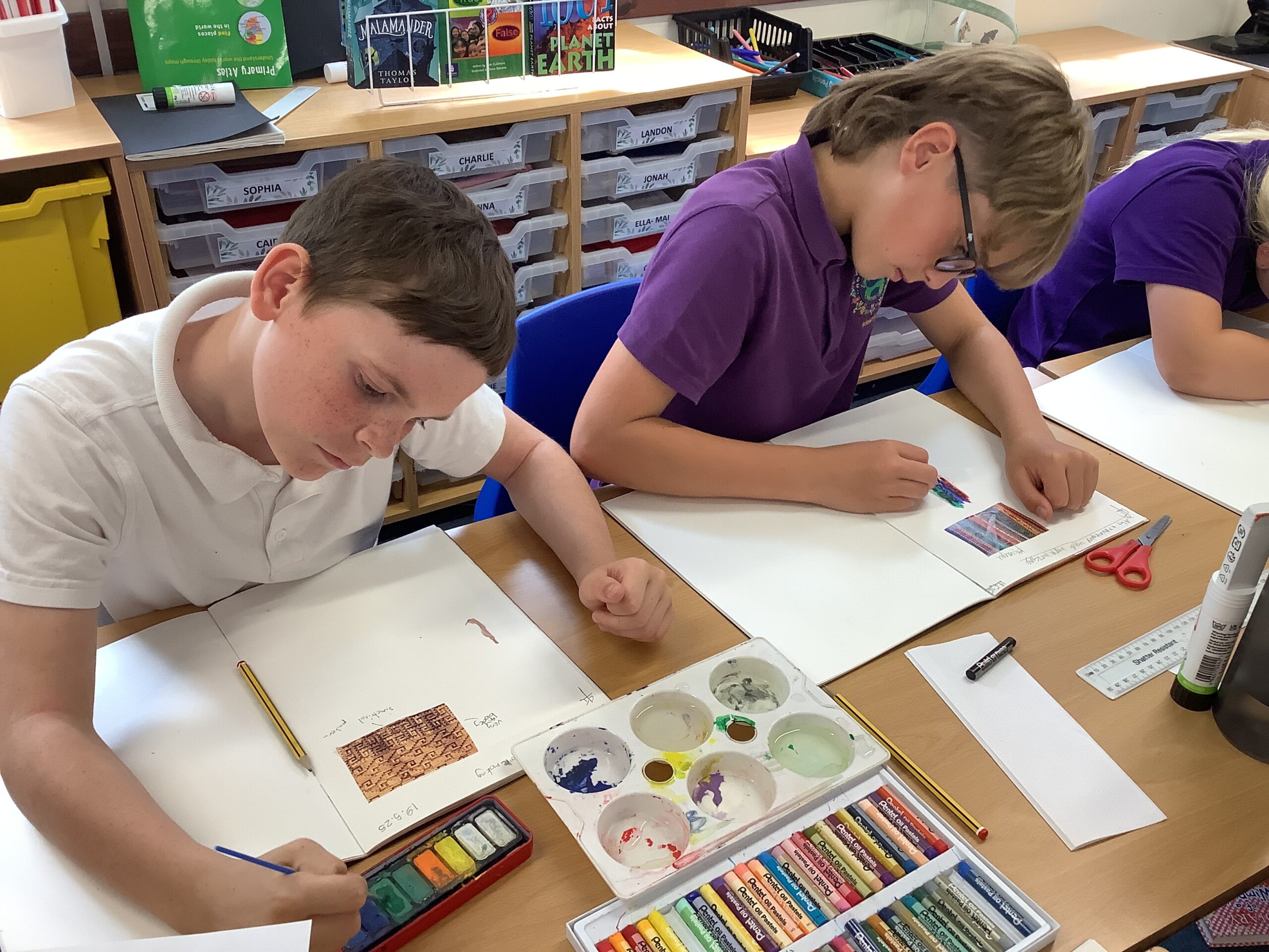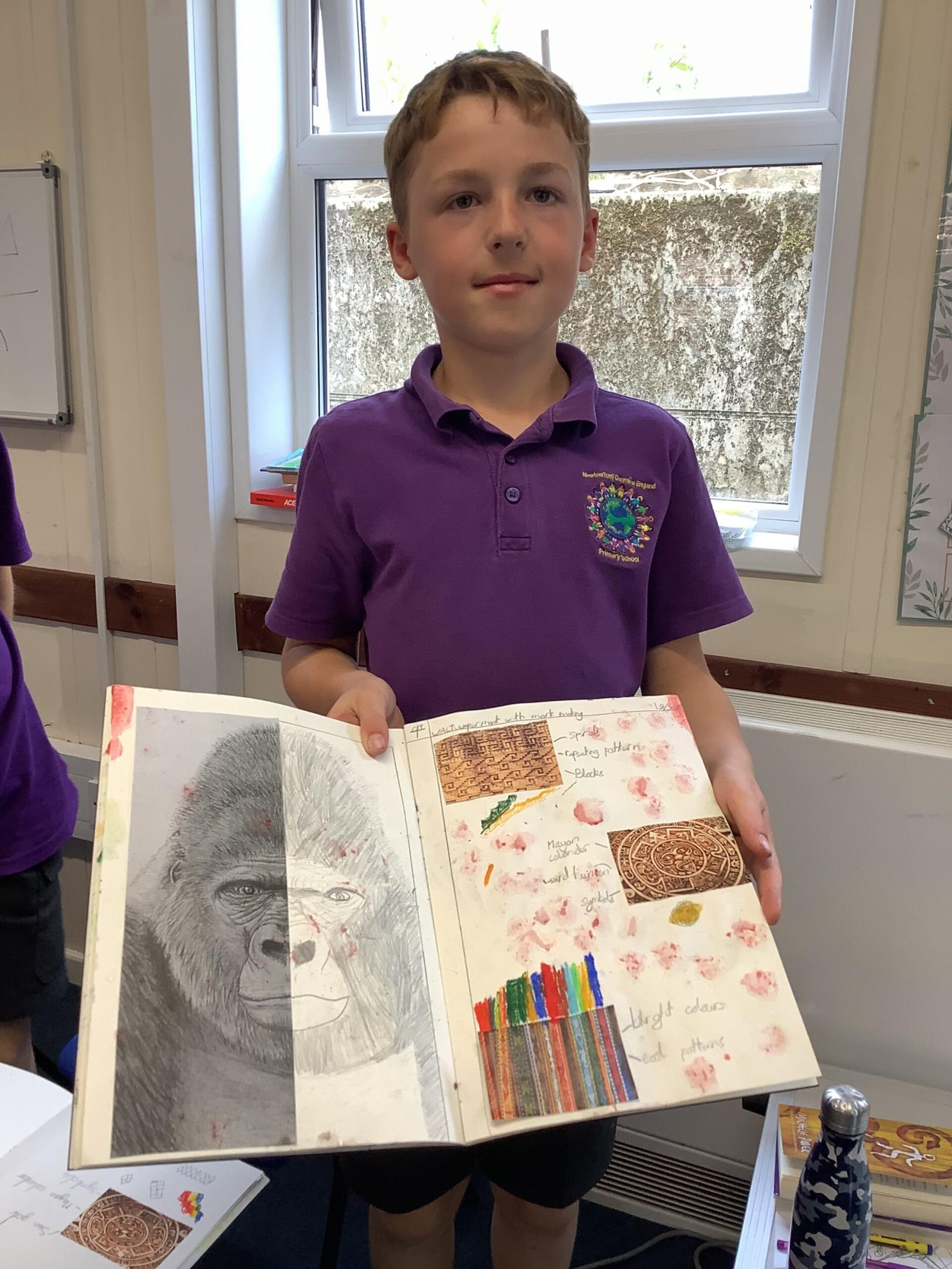 The children enjoyed experimenting in their sketch books, responding to Mayan-influenced artwork and the paintings of Diego Rivera.