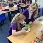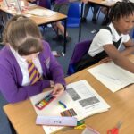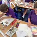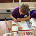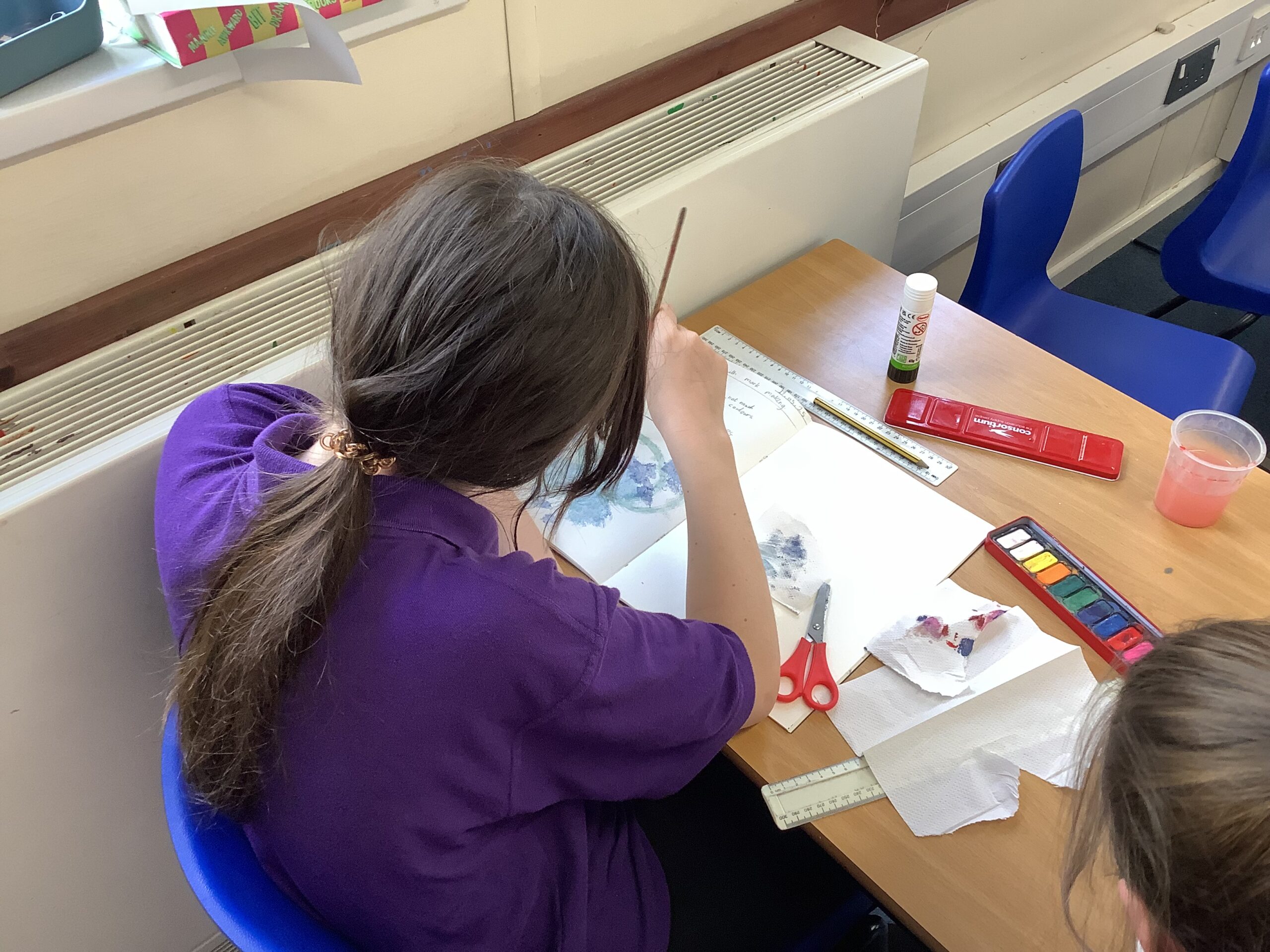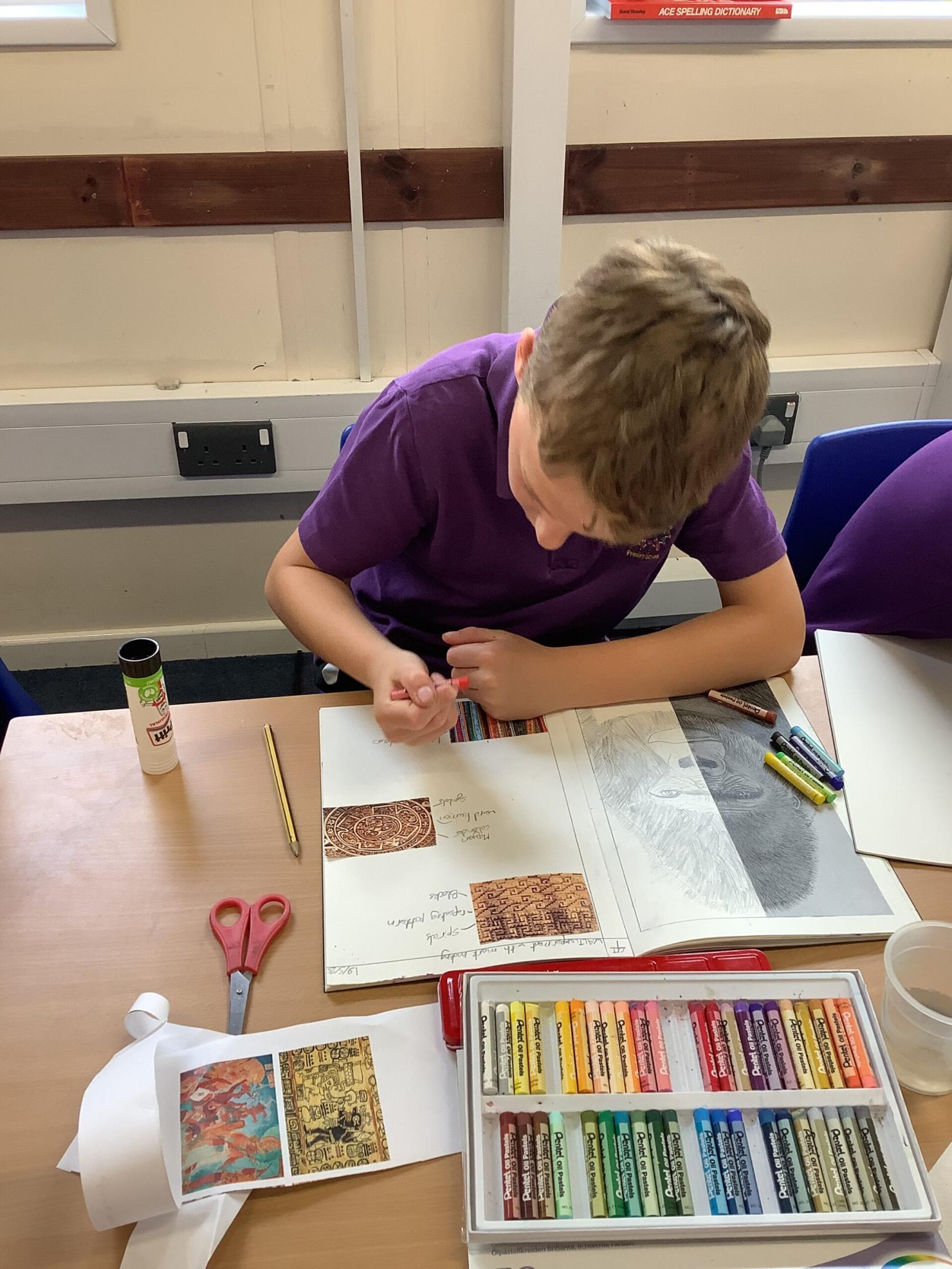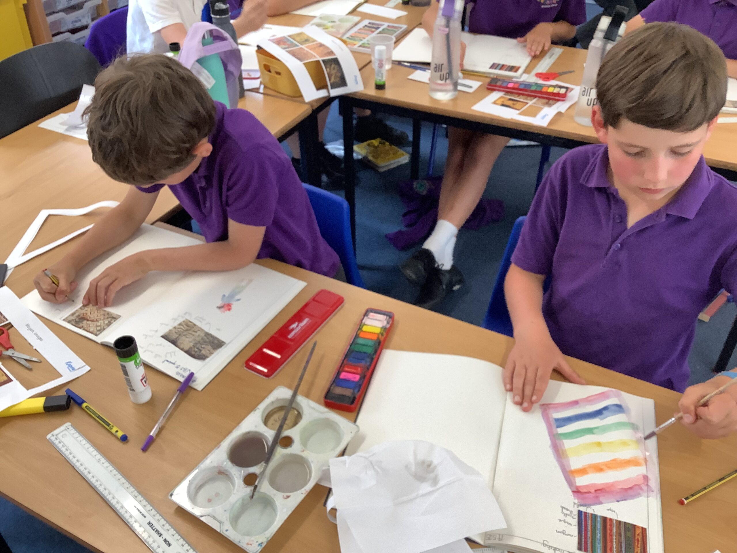 The children enjoyed experimenting in their sketch books, responding to Mayan-influenced artwork and the paintings of Diego Rivera.