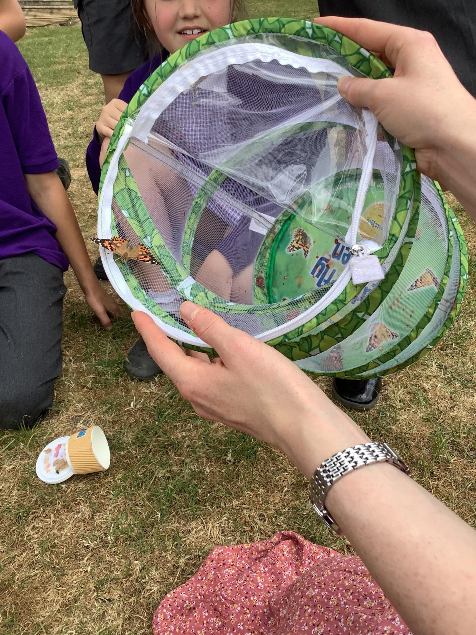 We've enjoyed observing the life cycle of our class caterpillars. Today it was time to release them as butterflies. Not all of them seemed to want to leave us...!