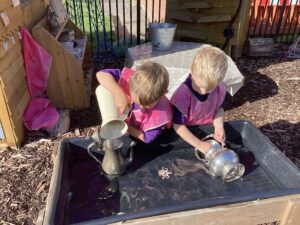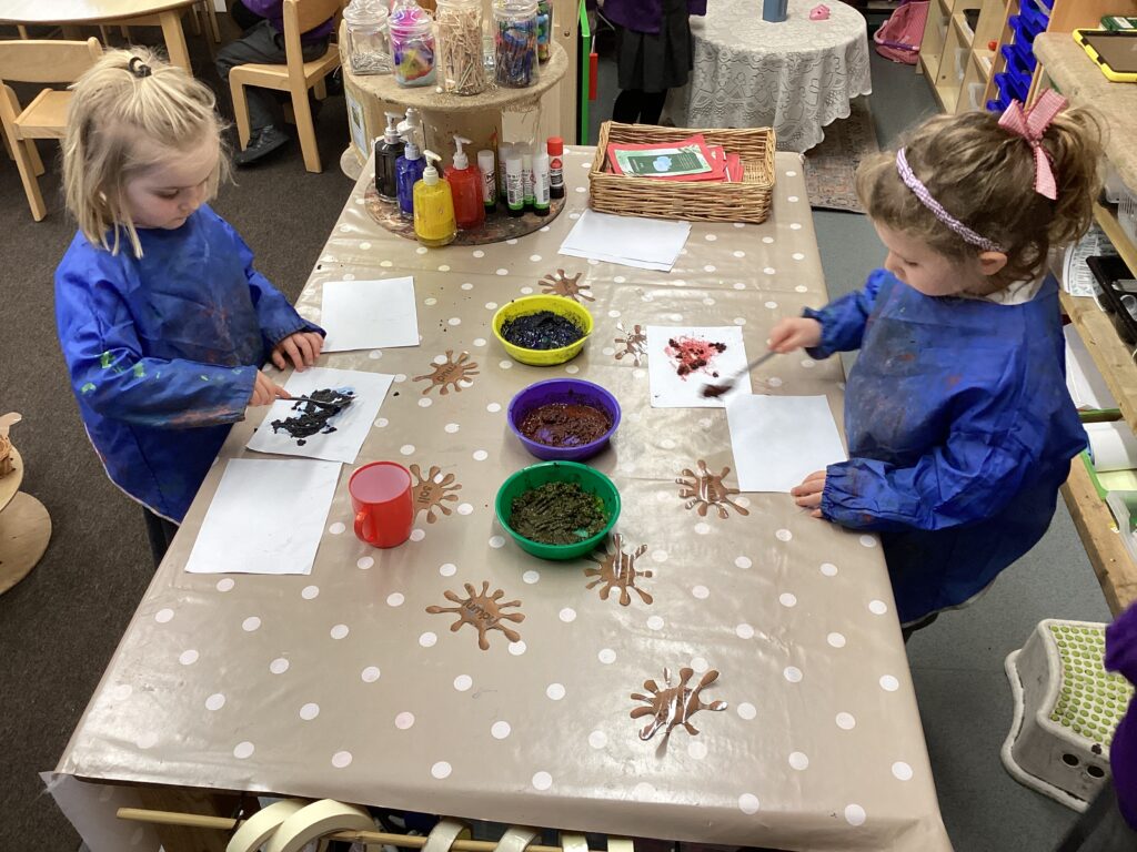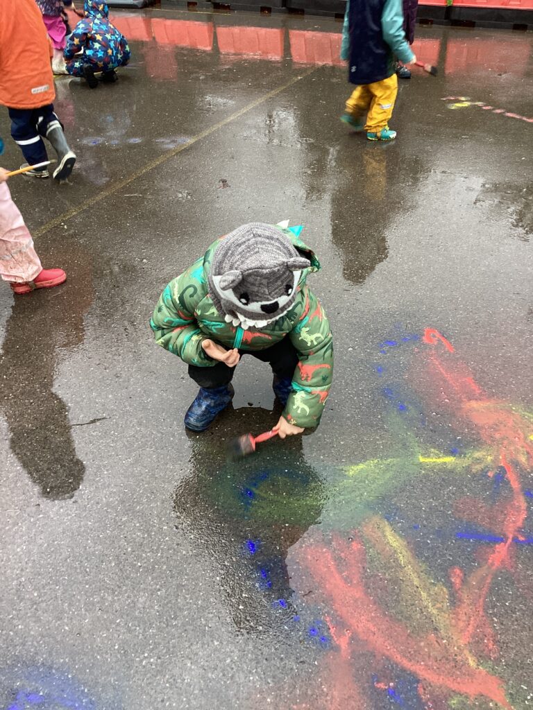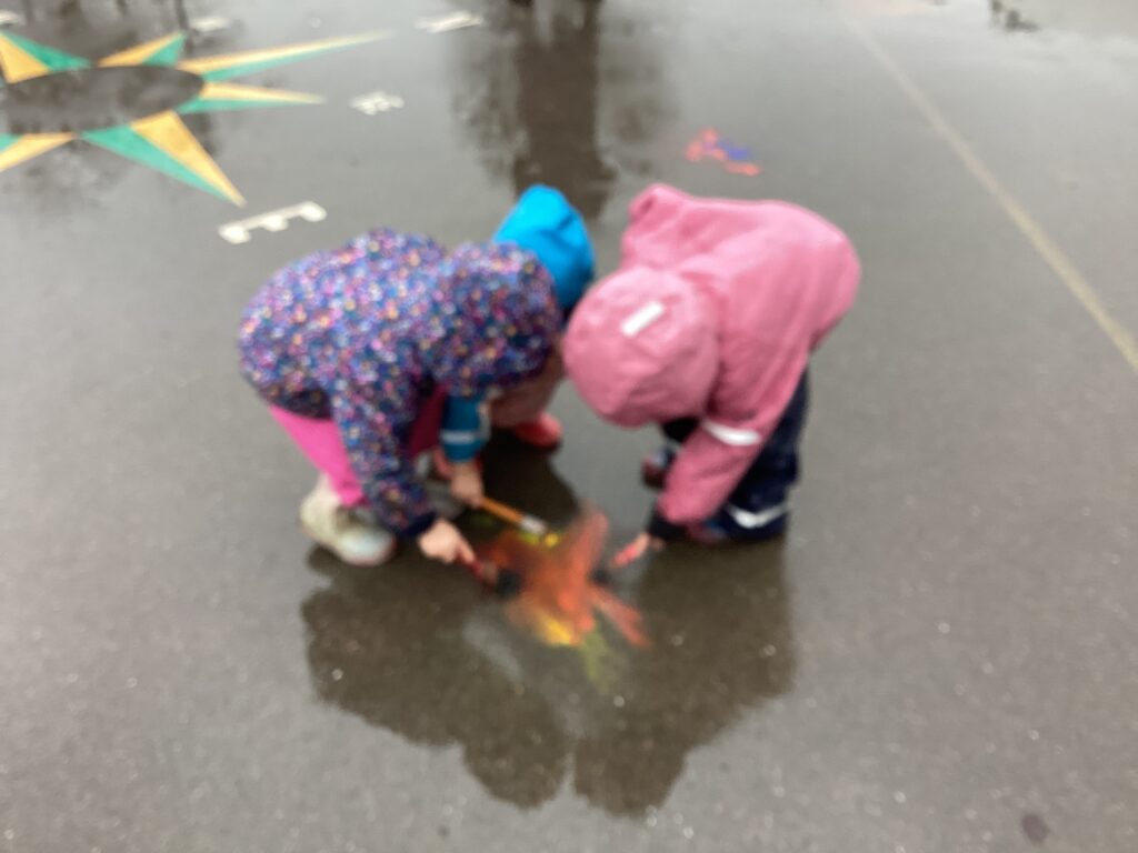 A little rain hasn’t slowed our Hedgehogs this week. Wrapped up in our wet‑weather gear, we splashed our way through puddles, exploring and experimenting with the magic of colour mixing as we went.