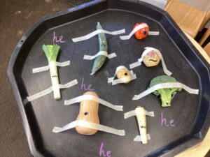 What a surprise we had when we arrived in class to find that the vegetables Mrs Jordan had brought for her lunch had been captured! It didn’t take us long to realise the culprit was none other than the mischievous Evil Pea. Determined to help, we used our scissor skills to create our own Supertato heroes, ready to save the day. We then headed outside to search for clues, using our observation skills and imaginations. As part of our adventure, we drew maps to show the paths we followed, practising circular, straight, and zigzag pencil movements – an important step in developing early writing skills.