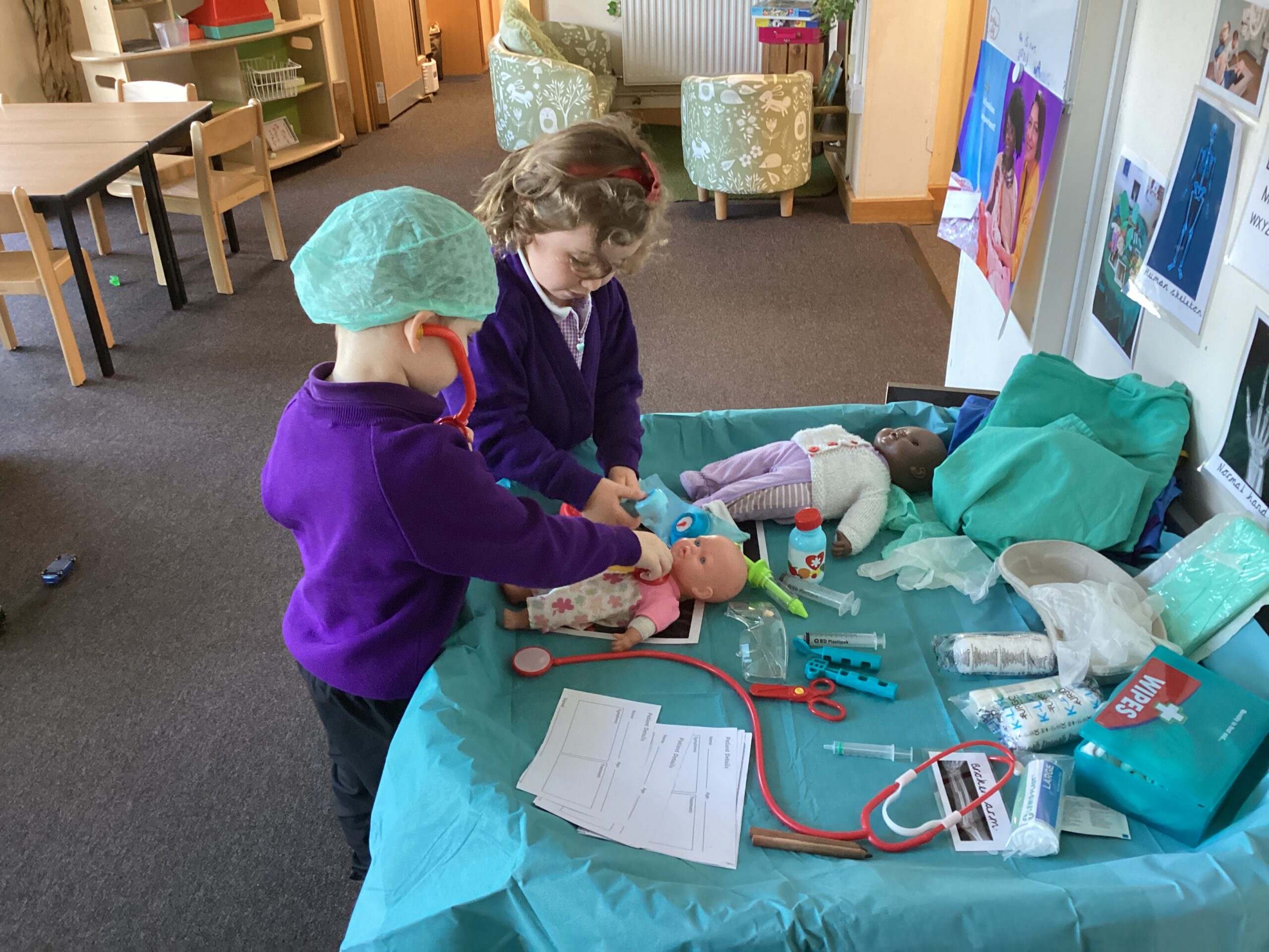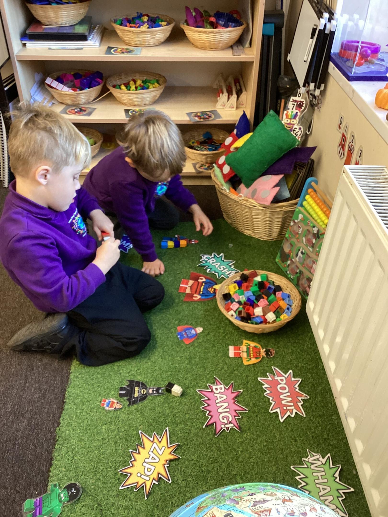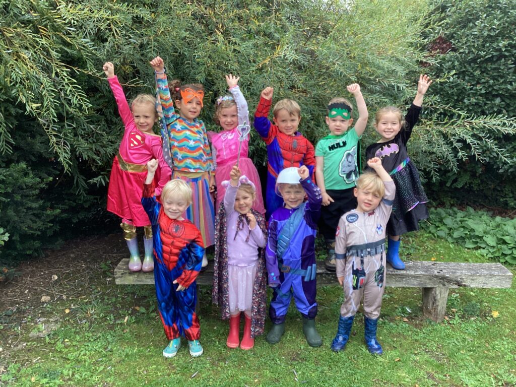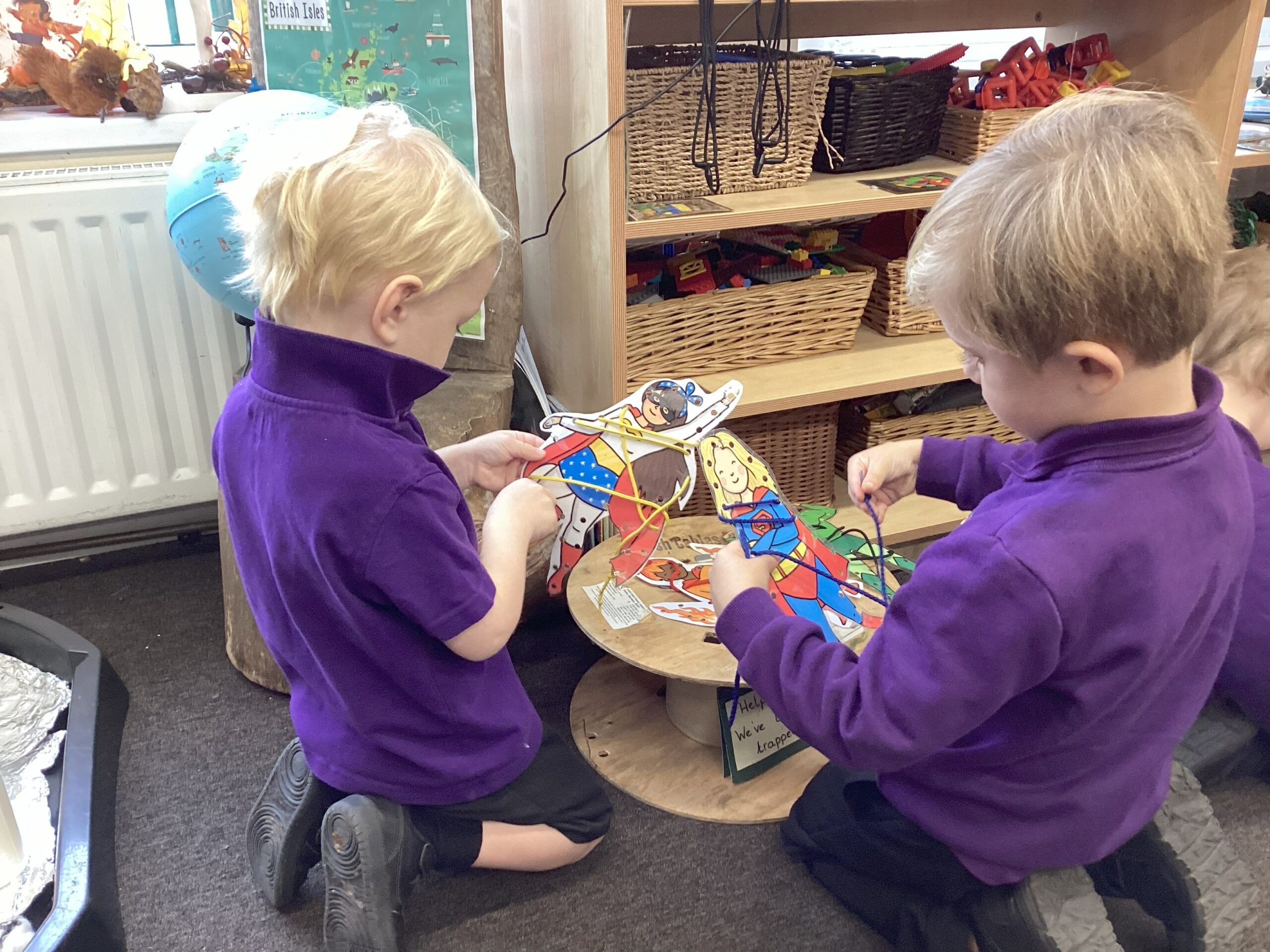 This week, we’ve been thinking all about real-life superheroes and the amazing qualities they have. We talked about the special people in our families who are superheroes to us, like kind mummies, strong daddies, and others who help us feel safe and cared for. We used our big muscles to draw large circles while lying on our tummies, helping to make our core strong—just like a superhero! In our play, we’ve had lots of fun exploring the provision, especially using an old telephone to call our superhero friends and share our important missions.