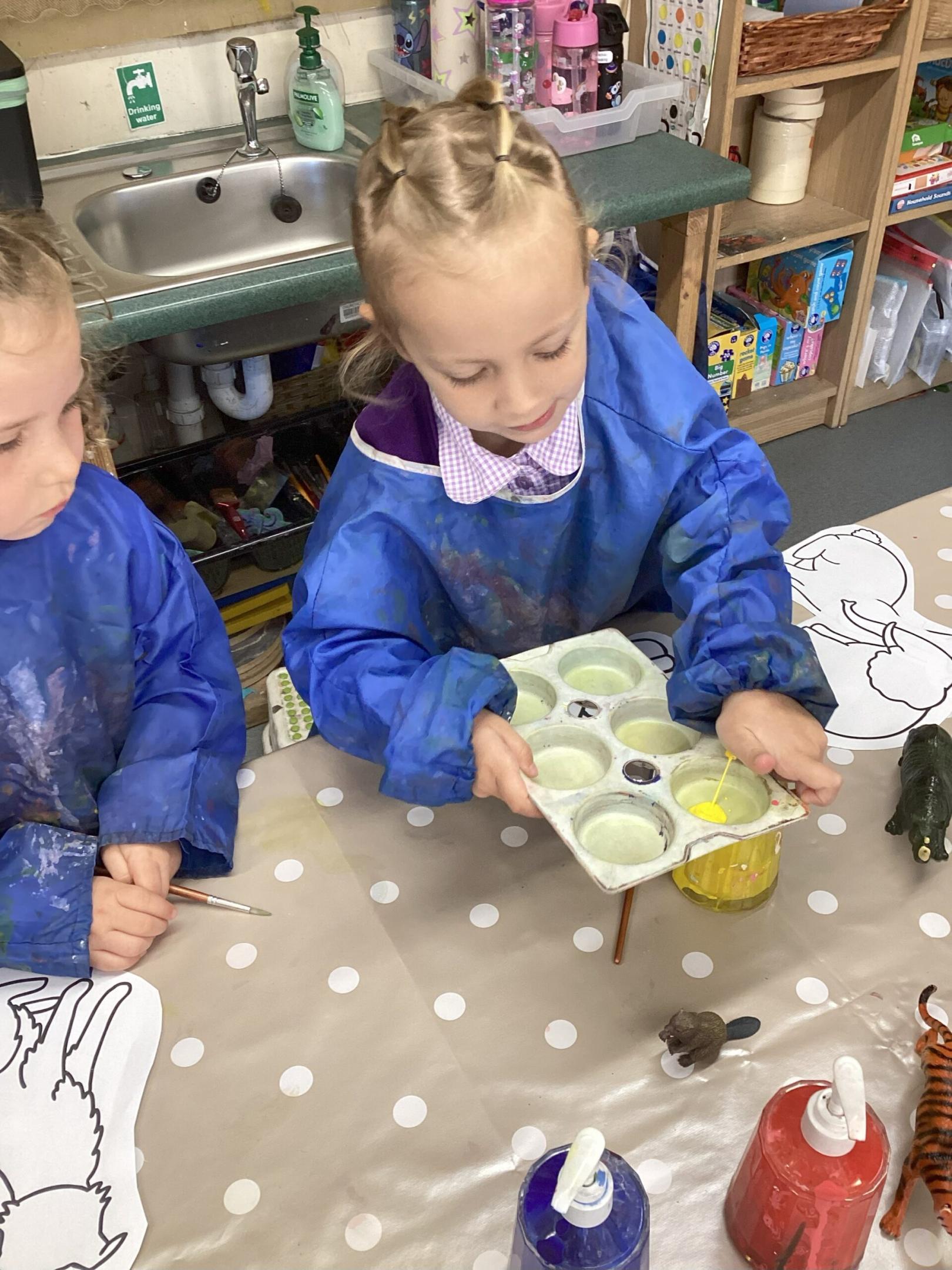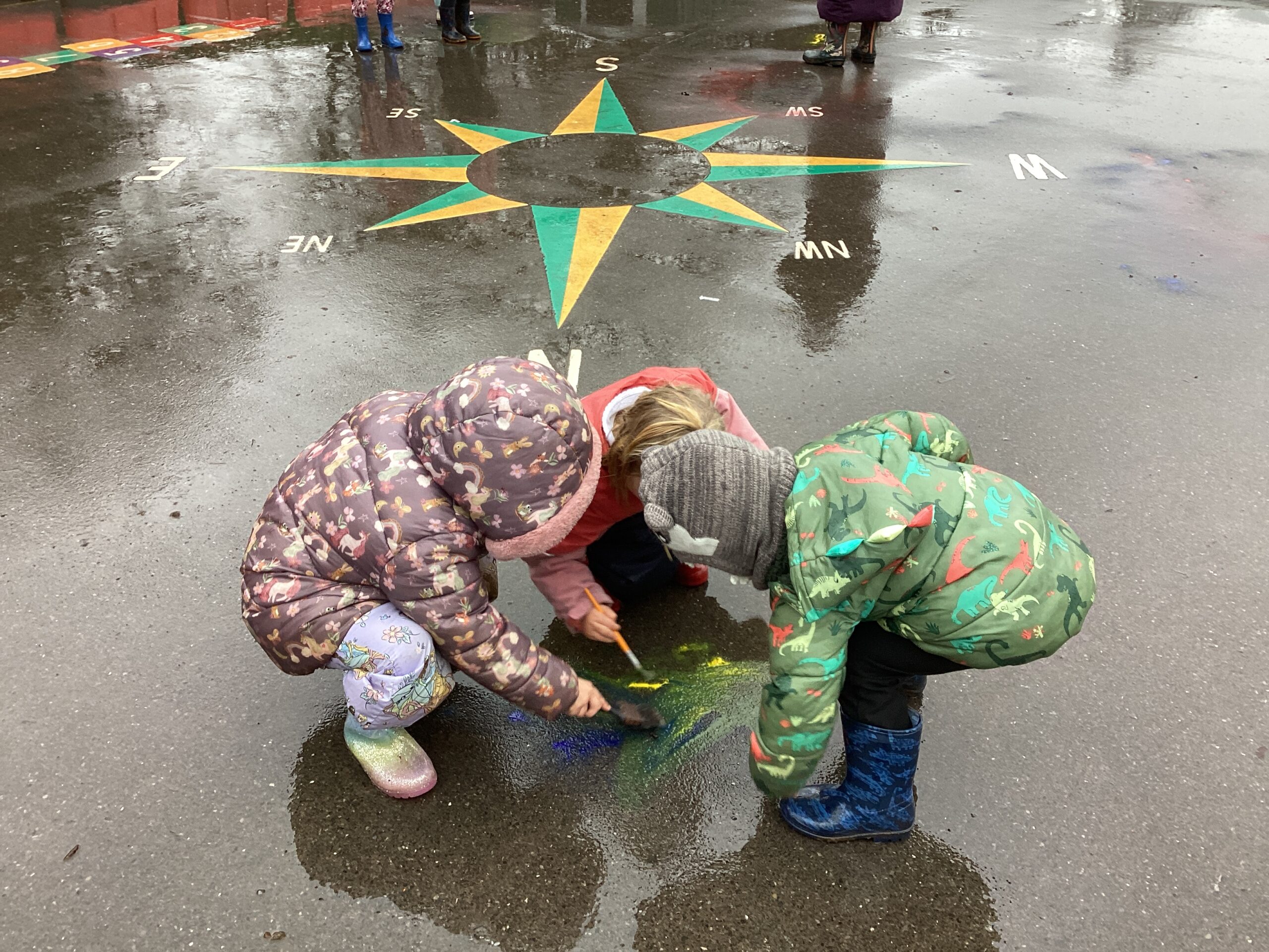 A little rain hasn’t slowed our Hedgehogs this week. Wrapped up in our wet‑weather gear, we splashed our way through puddles, exploring and experimenting with the magic of colour mixing as we went.