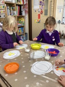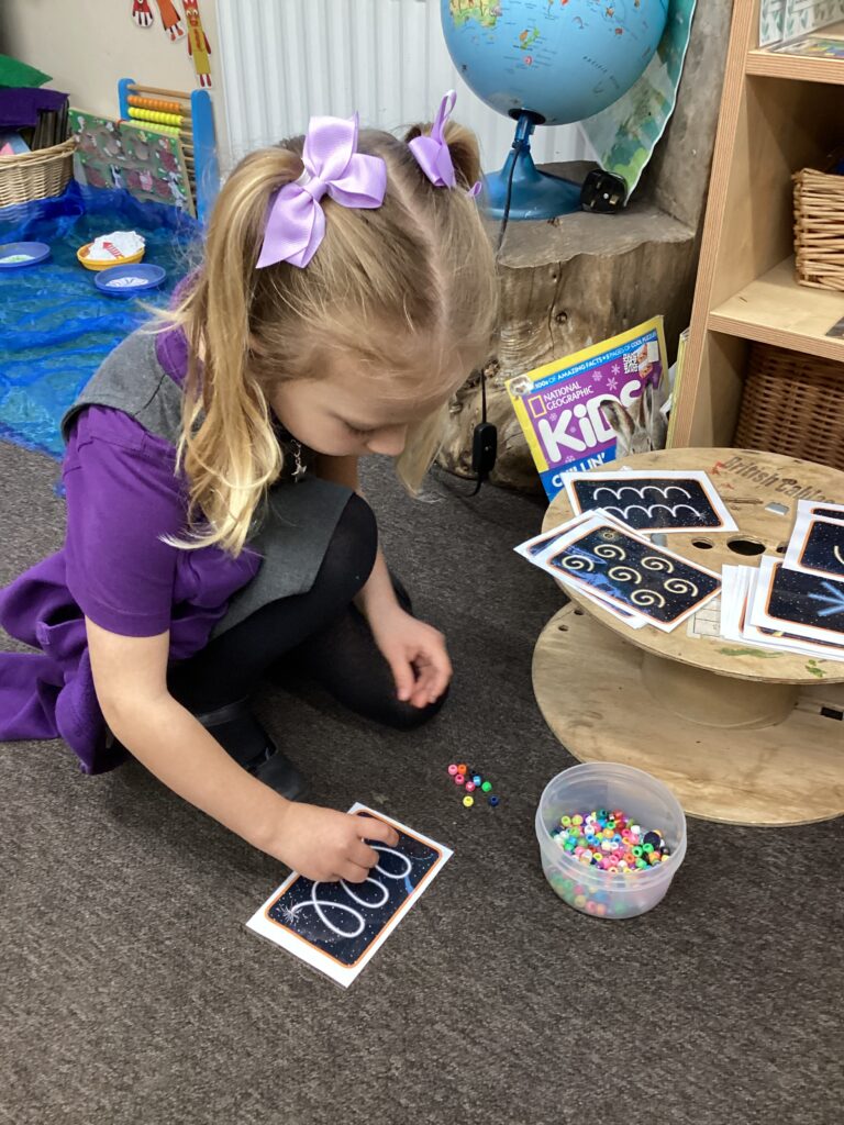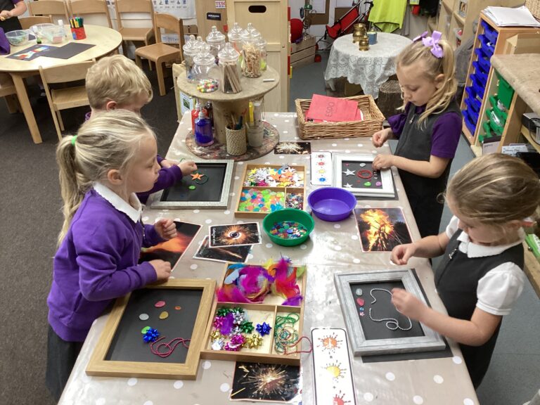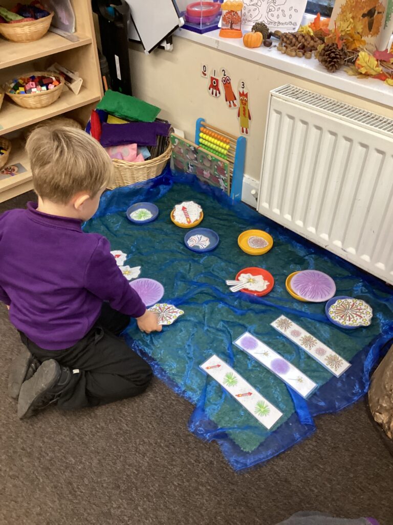 Week 1: Whizz, Bang, Fizz, Pop! We have been leaning about Guy Fawkes this week! We turned our names into rockets, made firework patterns out of beads, crafted firework pictures out of loose parts, learnt about the gun powder plot in our small world, and became artists, mixing oranges, yellows, and reds to make some beautiful bonfire paintings. What a creative bunch we are! Lots of us also enjoyed attending our school bonfire night celebration – how exciting!