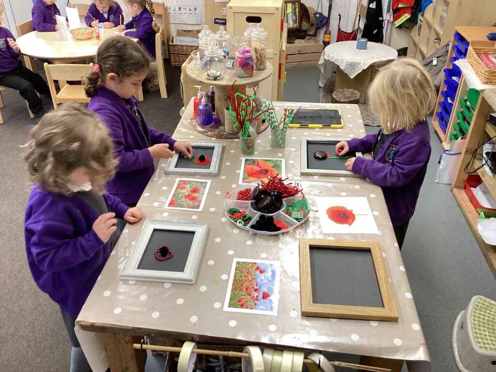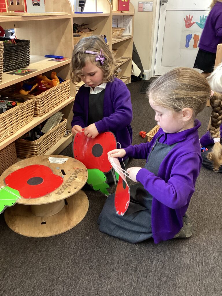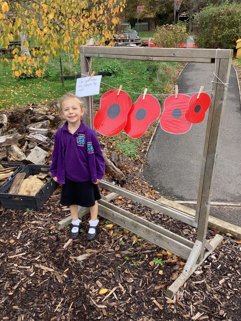 This week we have been learning about Remembrance Day. We found out why we wear poppies, and the importance of not forgetting, and discussed some of the important people in our own lives that serve in the military. We made our own poppy wreaths and split-pin poppies, counted with poppies, and even made some poppies out of loose parts – poppies everywhere!