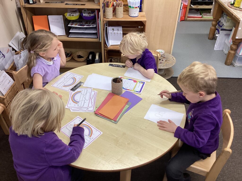 This week we had quite the dramatic surprise when we walked into the classroom to find it completely turned upside down — oats sprinkled everywhere and a sparkly necklace left behind as a clue. The children immediately became brilliant little detectives, creating wanted posters to help solve the mystery. Before long, we discovered the culprit was a very hungry Goldilocks, who felt terribly sorry and needed our help to make some heartfelt sorry letters. Naturally, our kind and caring Hedgehogs were more than happy to help her. We also enjoyed plenty of joyful moments during our Learning Through Play time, filling the classroom with curiosity, creativity and smiles.
