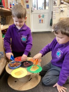 As we come to the end of our first full term in Hedgehog Class, we’ve had so much to celebrate! This week, we took part in our school’s Harvest Festival with a joyful performance of Dingle Dangle Scarecrow. The children sang and danced with such enthusiasm – we were so proud of their confidence and teamwork on stage. It’s been a fantastic start to our learning journey. The children have settled beautifully into school routines, made new friendships, and grown in independence. We are so impressed with how well they have adapted to life in school. During our learning through play sessions, we’ve been focusing on developing fine motor skills – a key part of early writing and self-care. The children enjoyed activities such as “cutting hair” using paper strips, using tweezers, and other fun challenges to help strengthen those important finger muscles. We’re incredibly proud of everything the children have achieved this term. Well done, Hedgehogs – we can’t wait to see what next term brings!