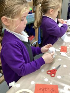 We have been celebrating our class puppet’s 5th birthday! We have used our phonic knowledge to write lists and invitations, made birthday cards, counted out candles, and baked some delicious cakes – yummy! We also worked together to write our own recipe, putting the photos we took in the right order, and writing instructions to match the pictures.