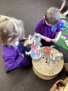 Hedgehogs were astonished this week when, after enjoying the story of Little Red Riding Hood, Little Red herself arrived to tell us that the Big Bad Wolf was on the loose. With great care and determination, the children created bright, thoughtful “Beware!” posters to help keep everyone in school safe, using wonderfully imaginative describing words to show exactly what he looks like. Their curiosity didn’t stop there. Together, we built a charming 3D map of the forest and used the Beebots to travel the same journey Little Red took on her way to Granny’s house, cheering each other on as they problem solved along the way. The children also poured so much creativity into making their own finger puppets, choosing colours, textures and details that made each one completely unique. And of course, our Learning Through Play time was filled with joy, imagination and plenty of shared laughter — just the way we like it.