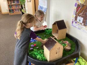 Our final week of Term 3 has arrived—how quickly the time has flown. Hedgehogs have had a truly magical few days. Their curiosity was sparked when they discovered a mysterious collection of objects in the classroom. Before long, they transformed into imaginative storytellers, weaving their own wonderful tales and using the items as props. The creativity they showed was a joy to watch. The excitement grew when we revealed that the objects were from the story Hansel and Gretel. Together, we sequenced the story, explored its characters and themes, and even created our very own delicious gingerbread houses. The children have been completely absorbed in rich, playful learning experiences, and it’s been a delight to see their confidence and imagination shine.