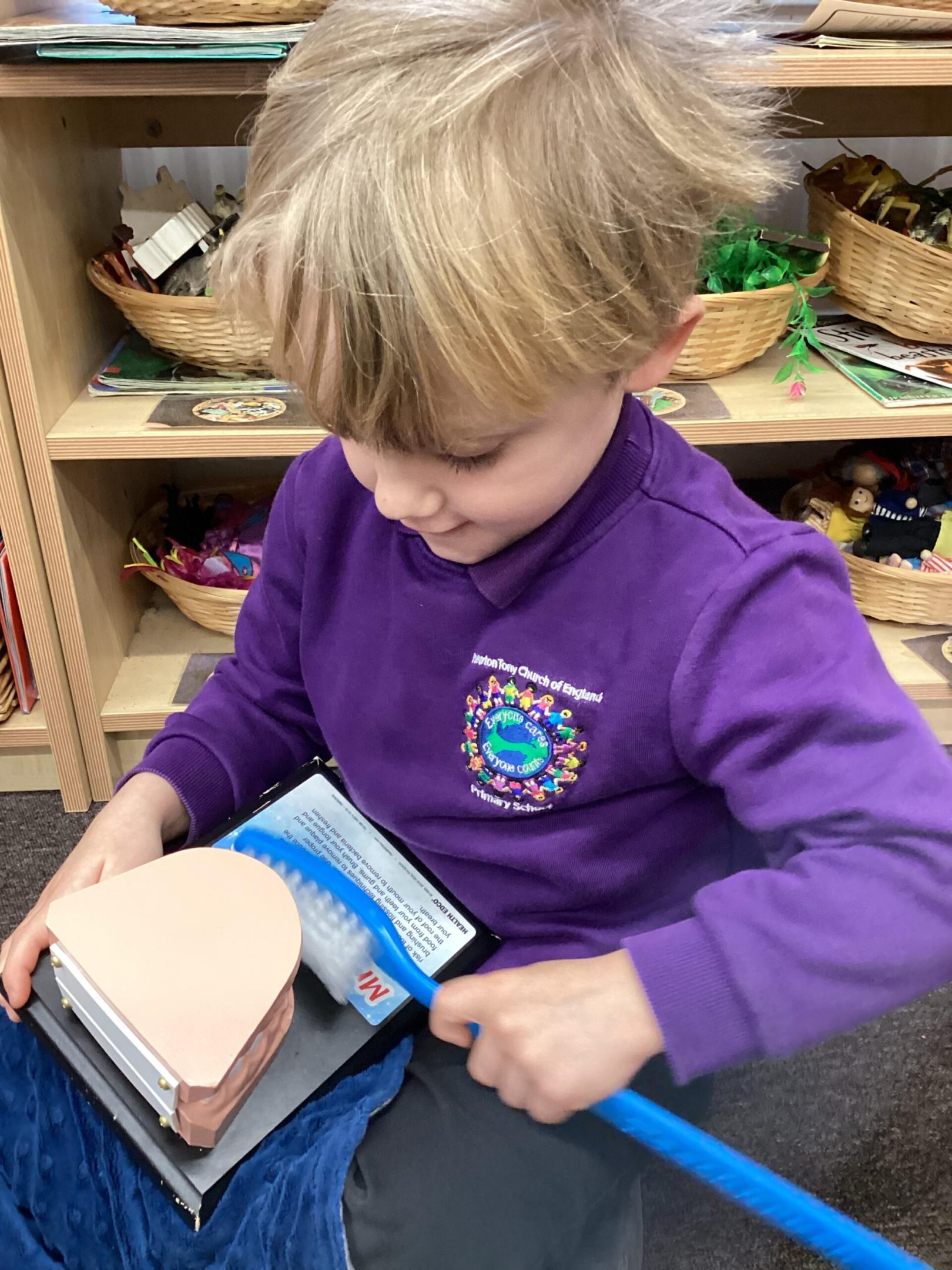 Week 5 What a heart warming week we’ve had in Hedgehogs. We have continued exploring the tale of Little Red Riding Hood, and the children have shown such enthusiasm as they sequenced the story, carefully piecing together each part. Their kindness truly shone when Little Red asked for help making get-well cards for her poorly grandma. The children rose to the challenge beautifully, sounding out thoughtful messages and creating cards filled with love and care. Our learning took an exciting turn when we started thinking about the Big Bad Wolf and his super sharp teeth. This led us to reflect on our own smiles, and we were lucky enough to welcome Amber the dentist into our classroom. She shared lots of wonderful tips about keeping our teeth clean, strong, and healthy . As always, our learning through play has been full of imagination, curiosity, and joyful discoveries.