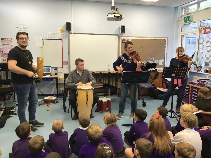 We believe that music plays an integral role in helping children to feel part of a community, therefore we provide opportunities for all children to create, play, perform and enjoy music both in class and to an audience. Through assemblies and performances, children showcase their talent and their understanding of performing with awareness of others. Our curriculum enables children to develop their skills, appreciate a wide variety of music and begin to appraise a range of musical genres.