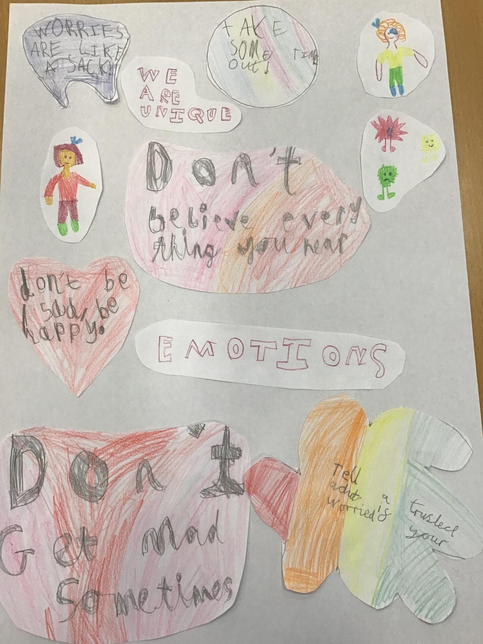 As the theme this year is "This is my place" we thought about how we all belong. We also designed an island that showed where we feel happy and what we feel makes us belong. We also made some posters to help ourselves when we make a mistake and how to think about our emotions.