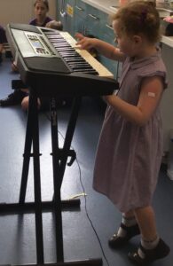 On Thursdays, Frances teaches keyboard lessons to some children.