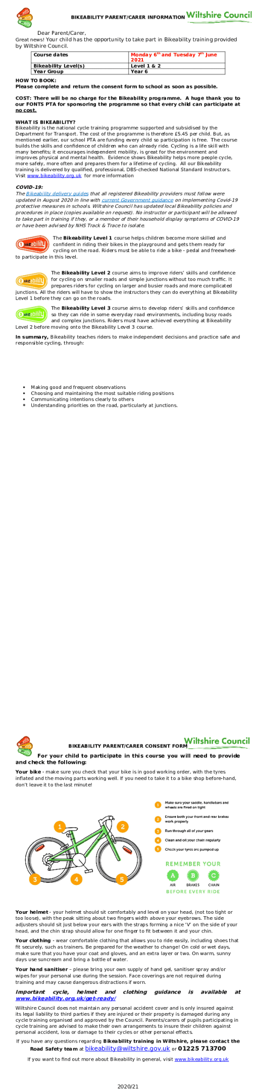 Bikeability Y6 Letter & Consent Form