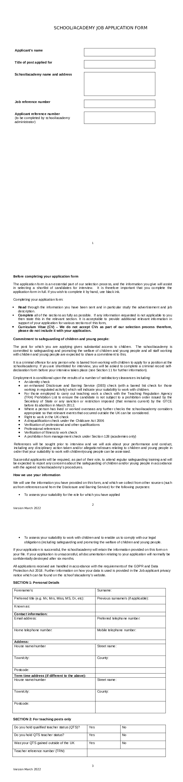 Job application form