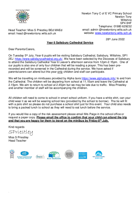 Y6 Salisbury Cathedral Leavers Service